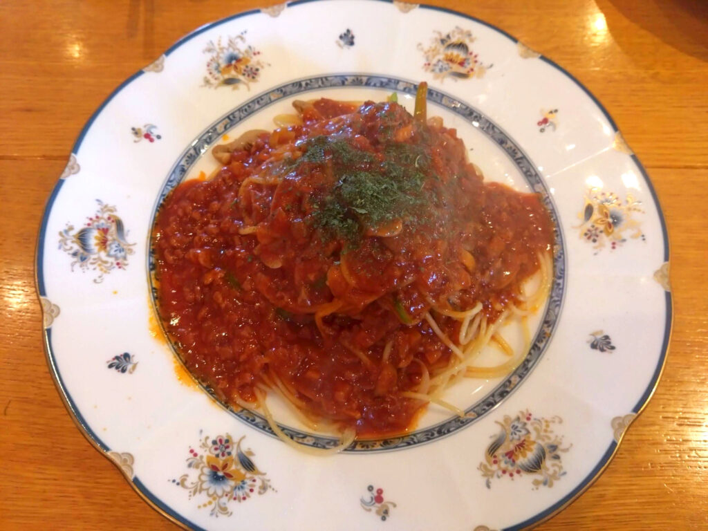 ひき肉、ピーマン、人参、椎茸など、具沢山のソースで食べ応えがあります!
