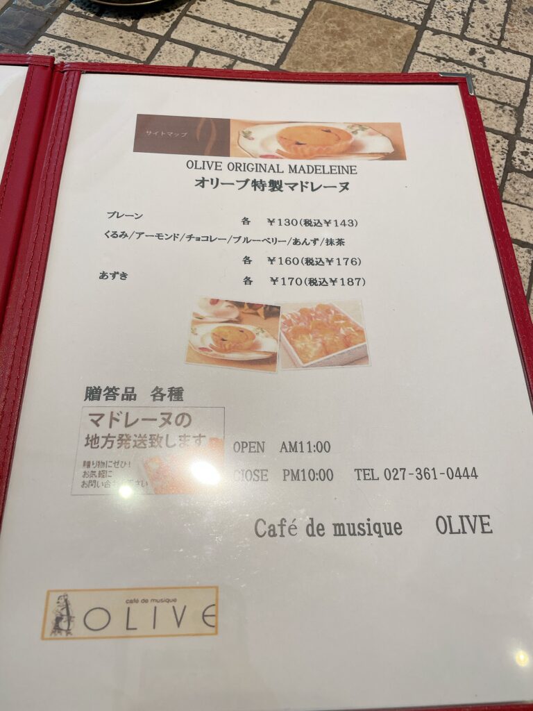 オリーブさんでは手作りの特製マドレーヌが販売されています。