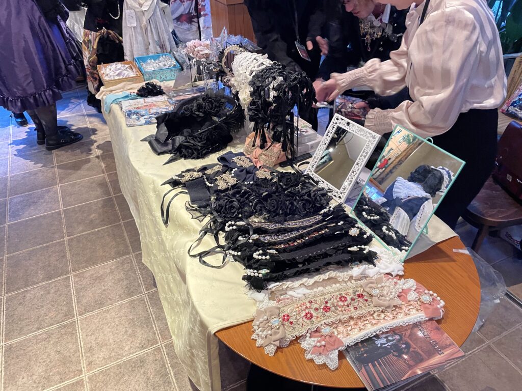 お洋服、アクセサリー、ヘッドドレスや帽子などの販売があり